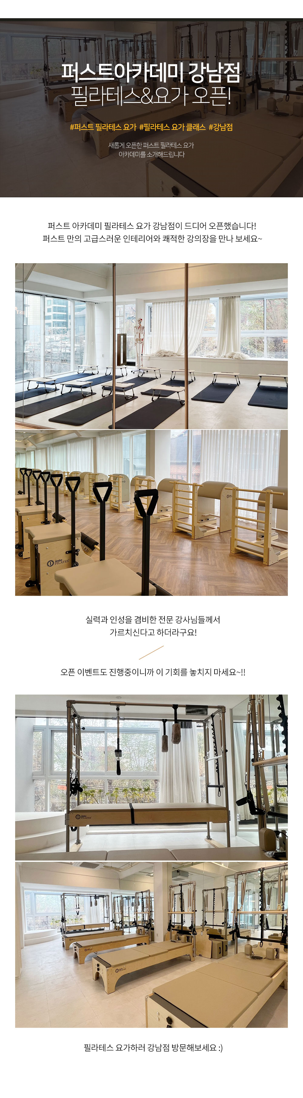 퍼스트 필라테스&요가 아카데미 강남점 오픈!